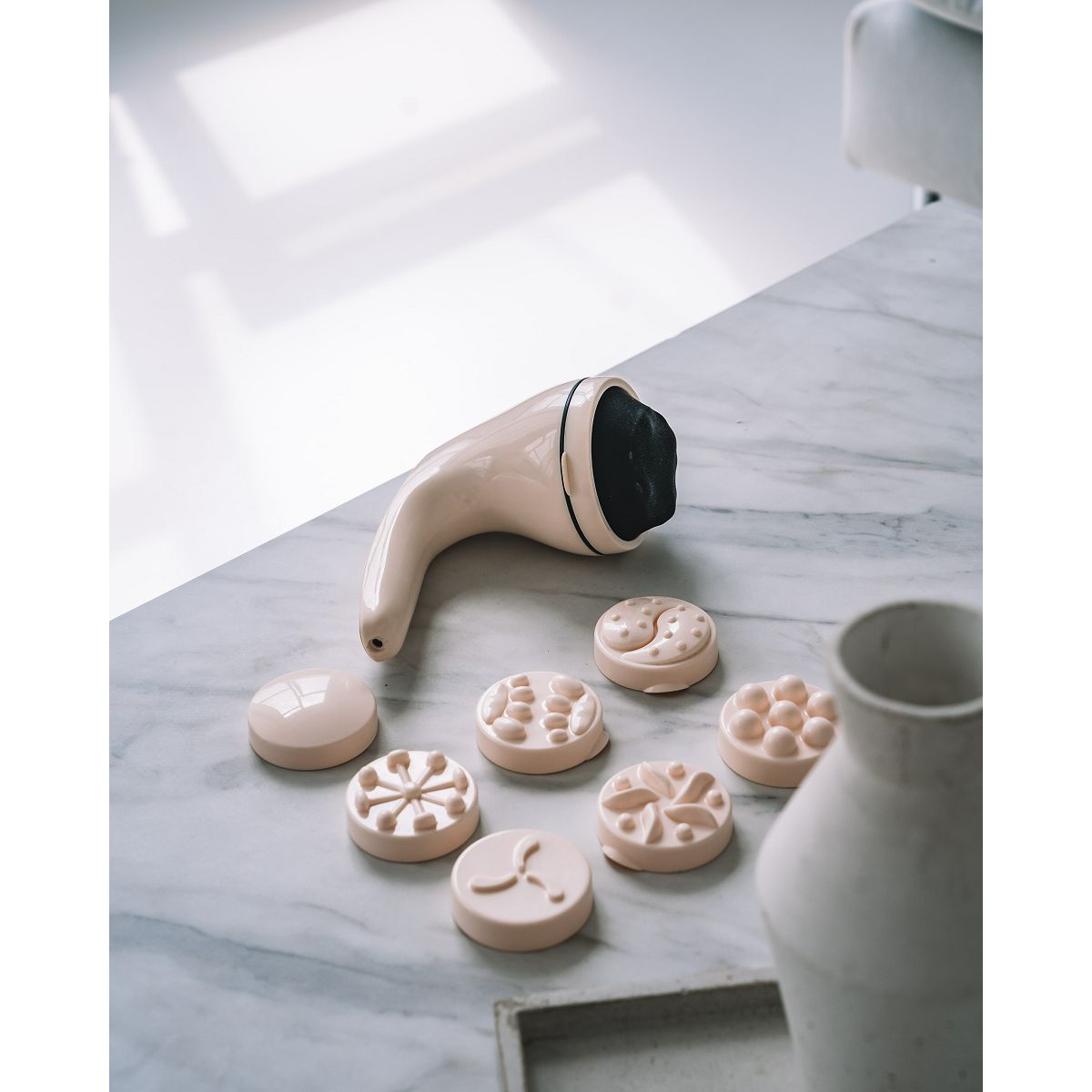 • Oblikovanje telesa: Masažer učinkovito stimulira globlje plasti kože in mišic, kar pomaga pri zmanjševanju celulita in preoblikovanju problematičnih predelov, kot so stegna, boki, trebuh in zadnjica.