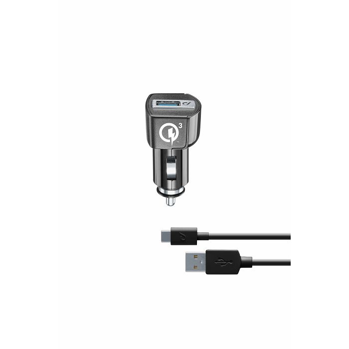 CellularLine avto polnilec+USB-C kabel,QC 3.0 črn