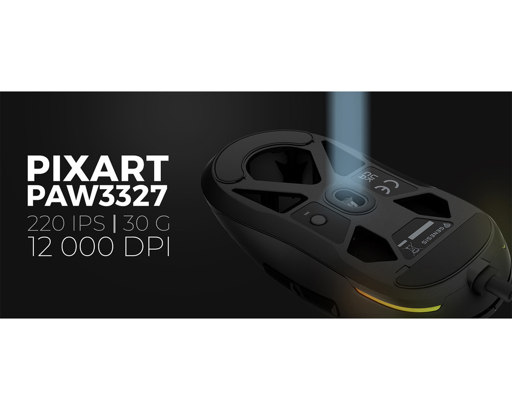 Z GENESIS Krypton 660 lahko pozabite na kakršne koli anomalije, ki bi ga lahko motile. PAW3327 pomeni odsotnost pozitivnih in negativnih pospeškov ter izgubo sledenja tudi pri premikih 220 palcev/sekundo in pospeških 30 G. Natančno sledenje – milimeter za milimetrom.