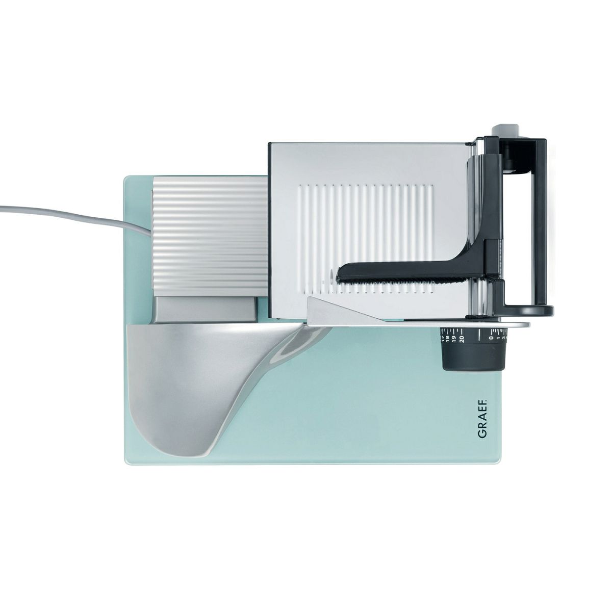 Univerzalni rezalnik GRAEF CLASSIC 22 TWIN v elegantni srebrni barvi s priloženima dvema reziloma (gladkim in nazobčanim). Rezlanik je v celoti izdelan in sestavljen v Nemčiji (Handmade in Germany).