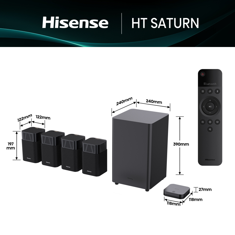 Doživite izboljšan prostorski zvok s HT Saturn in televizorjem, ki delujeta skupaj in hkrati uporabljata vse razpoložljive zvočnike, da razširita zvočno polje in zagotovita resnično poglobljeno avdio izkušnjo. *Hi-Concerto deluje samo z izbranimi modeli televizorjev Hisense.