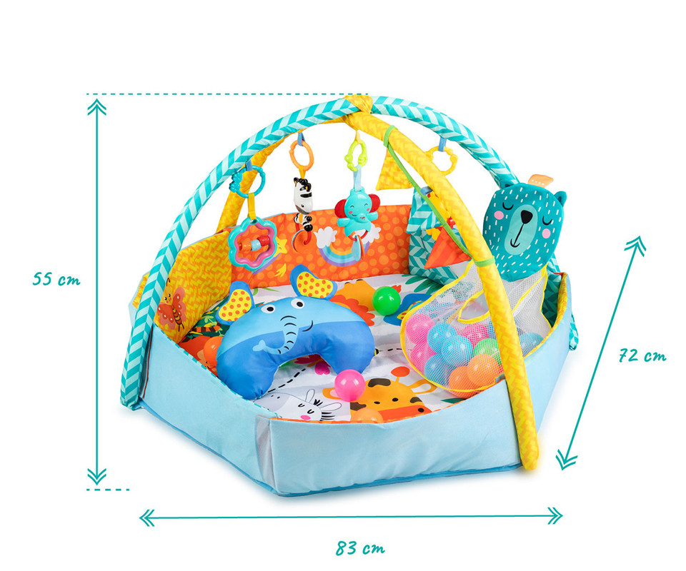 - Priložene žogice – igralni podlogi je priloženih tudi 30 pisanih žogic, ki bodo še dodatno animirale vašega otroka.