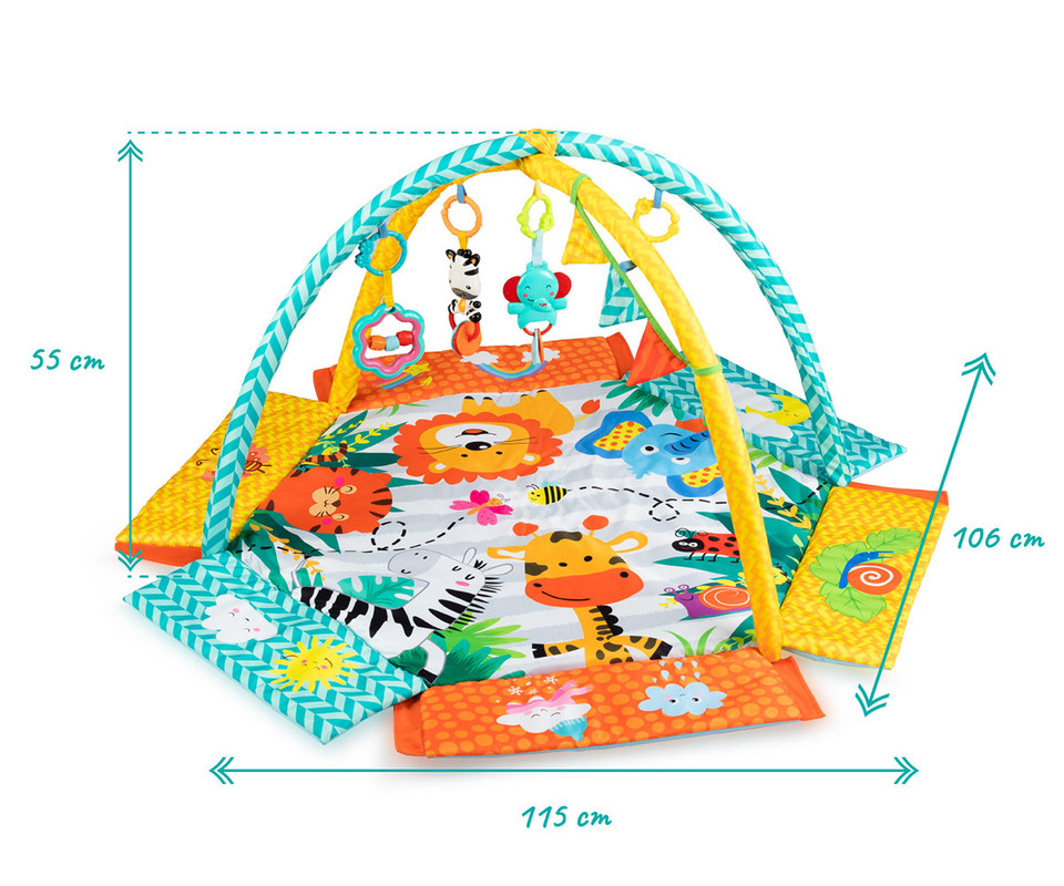- Pisana girlanda – naredi še zanimivejši dizajn. Funkcija suhega bazena – enostavno dvignete stranice igralne podloge in ustvarite suh bazen. Velika površina – 120 x 100 x 55 cm. Upognjena blazina – zelo praktična pri prvih poskusih plazenja otroka.