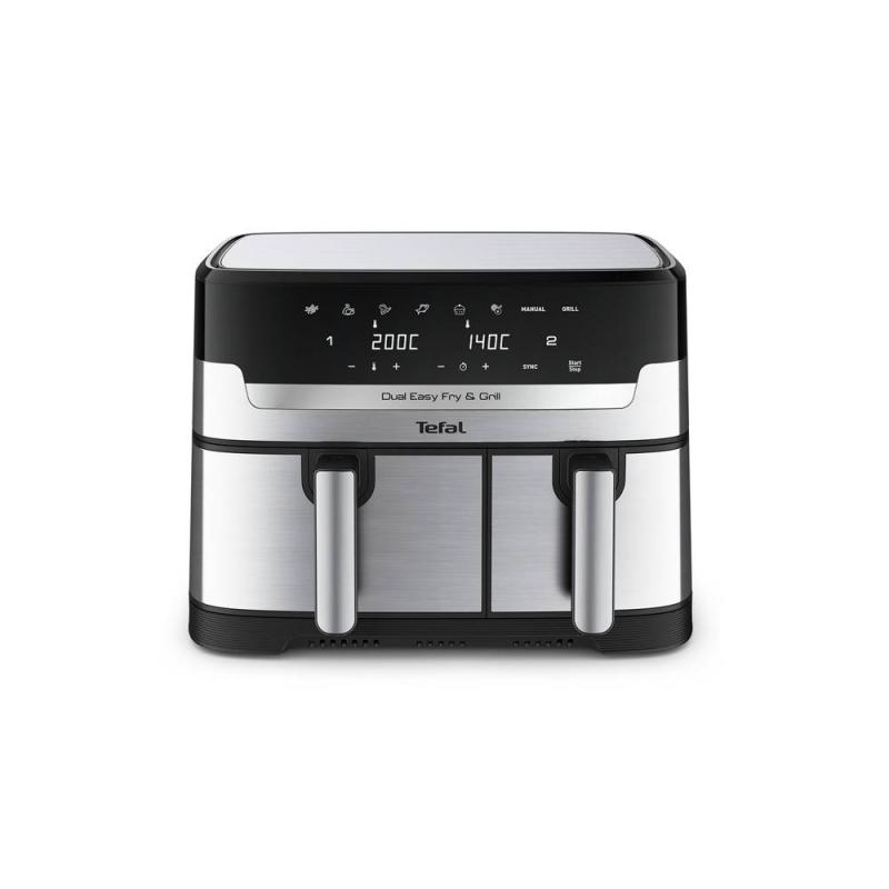 Dual Easy Fry & Grill znamke Tefal ima dva predala za kuhanje dveh različnih jedi – od pečenega mesa in krompirčka do ocvrte ribe in zelenjave na žaru – vse pripravljeno istočasno.
